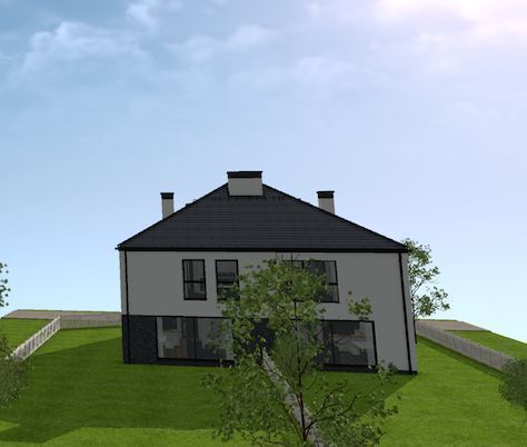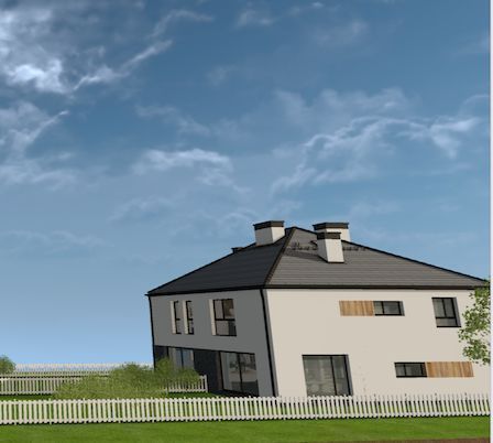 Projekt Herberta 44 w Gryfinie to inwestycja obejmująca jeden dom w zabudowie bliźniaczej, posadowiony na działce 1081 m2.